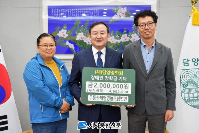[½Ã»çÁ¾ÇսŹ® = ¿À½ÂÅà ±âÀÚ] ´ã¾ç±º(±º¼ö À̺´³ë)Àº Áö³ 15ÀÏ ¹«µî»êüÇ迵³óÁ¶ÇÕ¹ýÀÎ(´ëÇ¥ ±è¸í¿ì)¿¡¼ Áö¿ªÀÎÀç À°¼ºÀ» À§ÇØ Àå¾ÖÀÎ ÀåÇÐ±Ý 2¹é¸¸ ¿øÀ» ±âŹÇß´Ù°í ÀüÇß´Ù.
