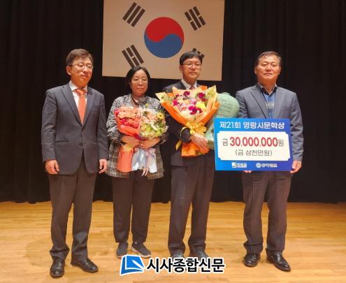 ¿µ¶û½Ã¹®Çлó ½É»çÀ§¿øÈ¸´Â ½É»çÆòÀ» ÅëÇØ ¡®½ÃÀÎÀÇ ½ÃÁýÀº ±×°¡ ¿À·¡ Áö¼ÓÇØ ¿Â ºÏ¹æÀÇ »î¿¡ ´ëÇÑ ³»¹ÐÇÔÀ» ¿©ÀüÇÏ°Ô À¯ÁöÇÏ¸é¼ ¸¶Ä§³» ±×·¯ÇÑ ¿ª»çÀǽÄÀ» °³ÀÎÀûÀÎ Á¤¼·Î À°ÈÇÏ´Â µ¥±îÁö ³ª¾Æ°¬´Ù´Â Á¡ÀÌ ³î¶ó¿ü´Ù¡¯¸é¼ ¡®½ÃÁý¿¡ ³Ð°Ô ´ã±ä »çȸÀû ¼»ç¿Í °³ÀÎÀû ¼Á¤ÀÇ ½ºÆåÆ®·³Àº ¿µ¶ûÀÇ ½Ã°¡ ¹Ì·ÁÇÏ°Ô Á¶Å¹µÈ ¾ð¾î¿¡¼ Á¡Â÷·Î »çȸ¡¤¿ª»çÀûÀÎ ¿µ¿ªÀ¸·Î ³ª¾Æ°¬´ø °Íó·³ ¿µ¶ûÀÇ ½Ã Á¤½Å¿¡µµ ºÎÇÕÇÒ »Ó ¾Æ´Ï¶ó âÁ¶ÀûÀ¸·Î °è½ÂÇÑ °ÍÀ̶ó ÇÒ ¼ö ÀÖÀ» °ÍÀÌ´Ù¡¯¶ó°í ¹àÇû´Ù.
