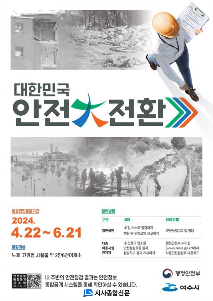 [½Ã»çÁ¾ÇսŹ® = ¿À½ÂÅà ±âÀÚ] ¿©¼ö½Ã(½ÃÀå Á¤±â¸í)°¡ ¿À´Â 6¿ù 21ÀϱîÁö Àç³À̳ª »ç°í ¹ß»ýÀÌ ¿ì·ÁµÇ´Â ½Ã¼³ µî 156°÷À» ´ë»óÀ¸·Î ¡®ÁýÁß¾ÈÀüÁ¡°Ë¡¯À» ½Ç½ÃÇÑ´Ù.