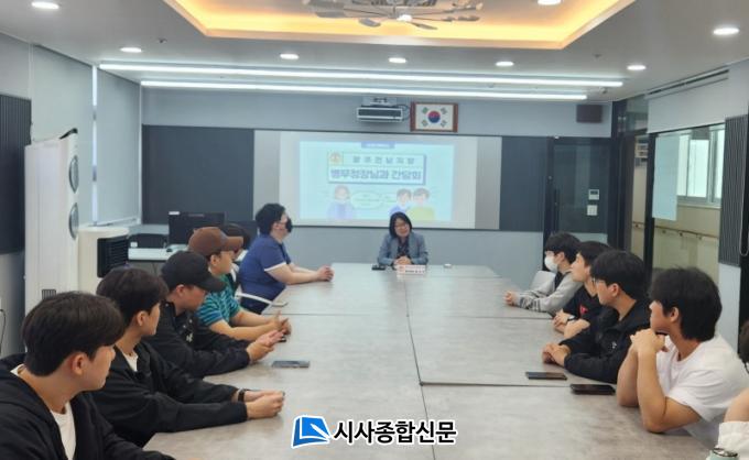 [½Ã»çÁ¾ÇսŹ® = ¿À½ÂÅà ±âÀÚ] ±¤ÁÖÀü³²Áö¹æº´¹«Ã»(È«½Â¹Ì)Àº 24ÀÏ ¼øÃµ ¼±ÇýÇб³¸¦ ¹æ¹®ÇÏ¿© Çб³Àå°ú °£´ãȸ¸¦ ½Ç½ÃÇϰí Àå¾ÖÇлý Ȱµ¿À» Áö¿øÇϰí ÀÖ´Â »çȸº¹¹«¿ä¿øÀ» °Ý·ÁÇß´Ù°í ¹àÇû´Ù.