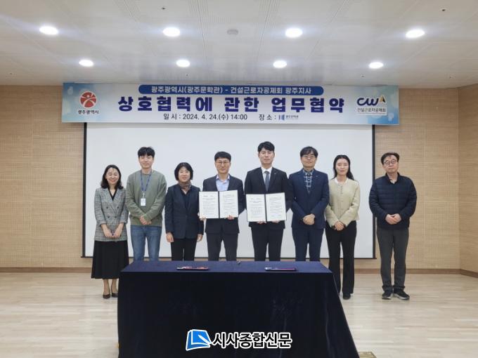 [½Ã»çÁ¾ÇսŹ® = ¿À½ÂÅà ±âÀÚ] ±¤ÁÖ¹®Çаü°ú °Ç¼³±Ù·ÎÀÚ°øÁ¦È¸ ±¤ÁÖÁö»ç´Â 24ÀÏ ¹®Çаü¿¡¼ ¹®ÇÐÀ» ÅëÇÑ º¹Áö ÁõÁø ¹× Áö¿ª »ó»ýÀ» À§ÇÑ ¾÷¹«Çù¾àÀ» ü°áÇß´Ù.