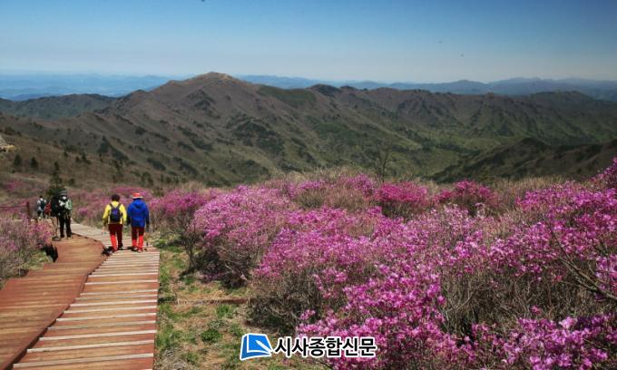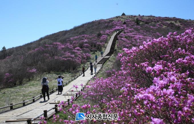 [½Ã»çÁ¾ÇսŹ® = ¿À½ÂÅà ±âÀÚ] 4¿ù 25ÀÏ ±¸·Ê±º »êµ¿¸é Áö¸®»ê ³ë°í´Ü(1507m)¿¡ Áø´Þ·¡°¡ ¸¸°³ÇØ Àå°üÀ» ÀÌ·ç°í ÀÖ´Ù.