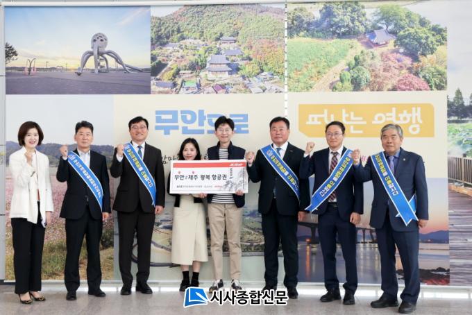 ¹«¾È±º°ú Á¦ÁÖÇ×°ø, Çѱ¹°øÇ×°ø»ç ¹«¾ÈÁö»ç´Â Á¦ÁÖ Á¤±â³ë¼± ¿îÇ×À» ±â³äÇϱâ À§ÇØ Á¦ÁÖÇ×°ø¿¡¼´Â ¹«¾È-Á¦ÁÖ °£ ¹«·á ¿Õº¹Ç×°ø±Ç 2¸Å¸¦ ù ¹øÂ° ¿¹¾àÀÚ¿¡°Ô ÁõÁ¤Çϰí, ¹«¾È±º°ú Çѱ¹°øÇ×°ø»ç ¹«¾ÈÁö»ç´Â ¹«¾È°ú Á¦ÁÖÀÇ ¸¸³² ºÐÀ§±â Çü¼ºÀ» À§ÇØ ¹«¾È Ư»êǰ°ú Á¦ÁÖ »ï´Ù¼ö¸¦ ¸ðµç ž½Â°´¿¡°Ô ÁõÁ¤ÇÏ¿´´Ù.