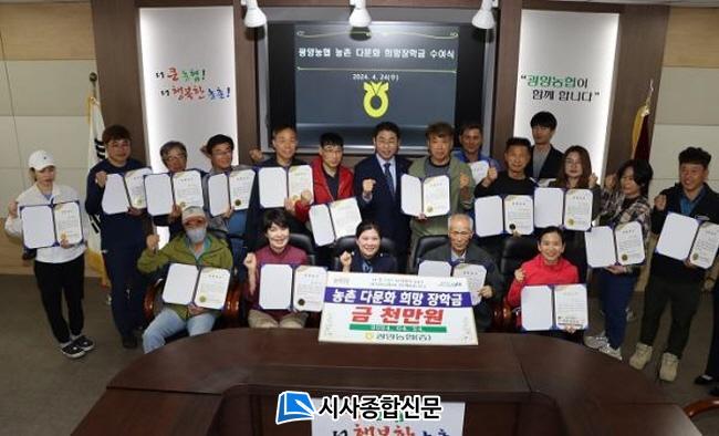 À̳¯ ÀåÇÐ±Ý Àü´Þ½Ä¿¡´Â ±¤¾ç °ü³» ÃÊ․Áß․°íµîÇб³¿¡ ÀçÇÐÁßÀÎ ³ó¾÷ÀÎ ´Ù¹®È °¡Á¤ ÀÚ³à 20¸íÀ» ¼±¹ßÇÏ¿© °¢ 50¸¸¿ø¾¿ ÃÑ 1õ¸¸¿øÀÇ ÀåÇбÝÀ» Àü´Þ Çß´Ù.