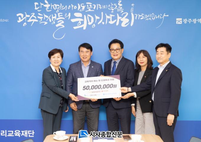 °°Àº ³¯ ±âºÎ±Ý Àü´Þ½Ä¿¡´Â ÀÌÁ¤¼± ±¤ÁÖ±¤¿ª½Ã±³À°°¨°ú ±¤ÁÖÈñ¸Á»ç´Ù¸®±³À°Àç´Ü ÀÌ»ç, º¸±¤°Ç¼³(ÁÖ) ¹Ú»ó±Õ »çÀåÀ» ´ë½ÅÇØ ½Å¸¸È£ ºÎ»çÀå°ú ±¤ÁÖ»çȸº¹Áö°øµ¿¸ð±Ýȸ °ü°èÀÚ µîÀÌ Âü¼®Çß´Ù.