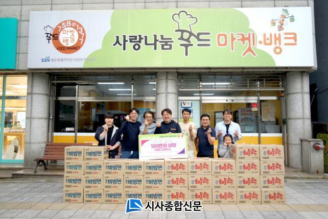 [½Ã»çÁ¾ÇսŹ® = °í¼º¹Î ±âÀÚ] °³ÀαâºÎÀÚ 6¸í(ÀÌÁ¤ÈÆ, Àü½ÂÀÏ, ¹é½ÂºÀ, À¯Çö¿í, ÁöÀº»ó, Á¤Àç½Ä¾¾)Àº 27ÀÏ Á¦ÁÖÆ¯º°ÀÚÄ¡µµ»çȸº¹ÁöÇùÀÇȸ(ȸÀå °í½ÂÈ)¿¡¼ ¿î¿µÇÏ´Â »ç¶û³ª´®Çªµå¸¶ÄÏ¡¤¹ðÅ©¿¡ ¹æ¹®ÇØ ¾î·Á¿î ÀÌ¿ôÀ» À§ÇÑ 100¸¸¿ø »ó´çÀÇ ¶ó¸é 280ÆÑ(1,400°³)À» Àü´ÞÇß´Ù.