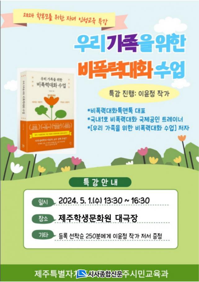 | Á¦ÁÖµµ±³À°Ã», ÀÌÀ±Á¤ ÀÛ°¡ ÃÊû °¿¬ ÁøÇà °¡Á¤ÀÇ ÇູÀ» À§ÇÑ Ã¹°ÉÀ½, Çкθ𸦠À§ÇÑ Àμº±³À° Ư° °³ÃÖ |
