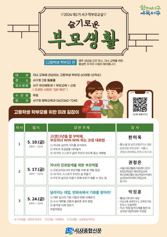 ƯÈ÷ 5¿ù 10ÀϺÎÅÍ ¸ÅÁÖ ±Ý¿äÀÏ ¿ÀÀü 10½Ã ¼±¸Ã» µéºÒȦ¿¡¼ ÁøÇàµÇ´Â¡®Á¦1±â °íµîÇлý Çкθ𸦠À§ÇÑ ¹Ì·¡ ±æÀâÀÌ¡¯¿¡¼´Â °¢ ºÐ¾ßÀÇ Àü¹®°¡µéÀÌ ¡ã°í(ÍÈ)3³âÀ» Àß ºÎÅ¹ÇØ, ºÎ¸ðÀÚ³à win-winÇÏ´Â ÄÚĪ ´ëȹý ¡ãÀÚ³àÀÇ Áø·Î Ž»öÀ» À§ÇÑ ºÎ¸ð ¿ªÇÒ ¡ã´Þ¶óÁö´Â ´ëÀÔ, º¯È ¼Ó¿¡¼ ±âȸ¸¦ ã¾Æ¶ó! ¶ó´Â ÁÖÁ¦·Î °íµîÀڳฦ µÐ Çкθðµé¿¡°Ô ½ÉÃþ °ÀǸ¦ Á¦°øÇÒ °èȹÀÌ´Ù.
