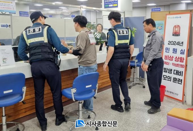 ¼±¸´Â Áö³´Þ 30ÀÏ Æø¾ð․ÆøÇà․À§Çù․³µ¿ µîÀ¸·ÎºÎÅÍ ¹Î¿ø´ã´ç °ø¹«¿øÀ» º¸È£ÇÏ°í ºñ»ó»óȲ ¹ß»ý ½Ã Á÷¿øÀÇ ´ëÀÀ´É·ÂÀ» Çâ»ó½Ã۱â À§ÇØ ¼ºÎ°æÂû¼¿Í ÇÕµ¿À¸·Î ¡®2024³â »ó¹Ý±â ¹Î¿ø½Ç ºñ»ó»óȲ ´ëºñ ¸ðÀÇÈÆ·Ã¡¯À» ½Ç½ÃÇß´Ù.