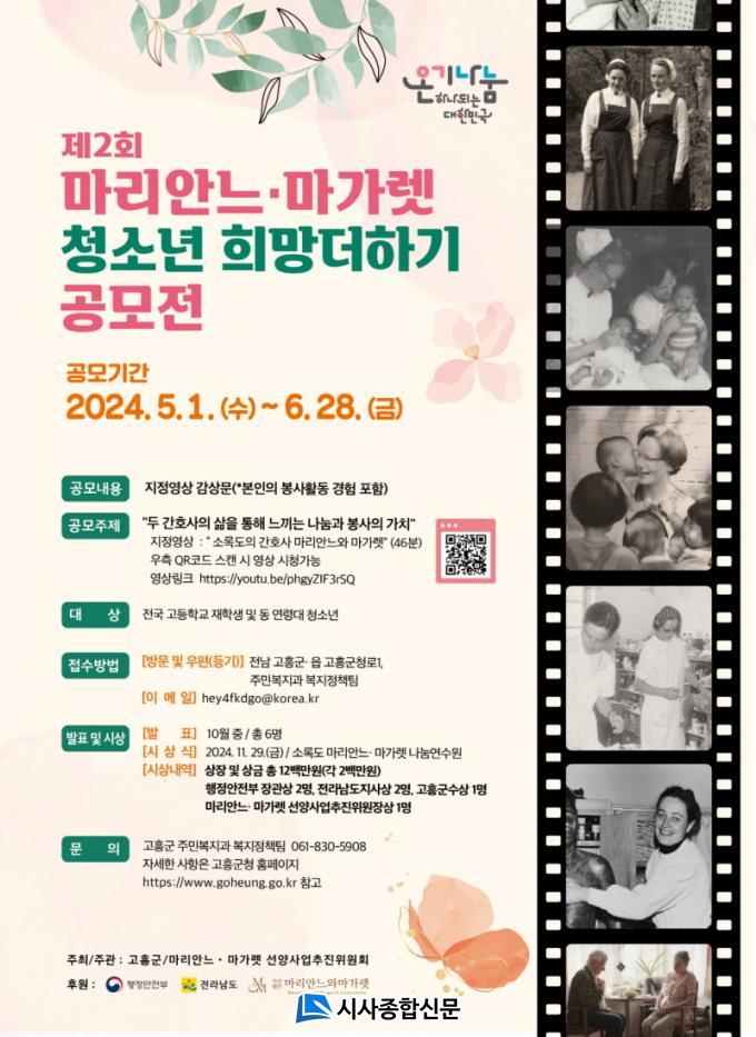 °ø¸ðÀüÀº 40¿© ³â°£ ¿ÀÁ÷ »ç¶û°ú Çå½ÅÀ¸·Î ¼Ò·Ïµµ ÇѼ¾º´ ȯÀÚµéÀ» º¸»ìÆñ´ø ¸¶¸®¾È´À¿Í ¸¶°¡·¿ µÎ °£È£»çÀÇ ºÀ»ç¡¤Àαǡ¤¹Ú¾Ö Á¤½ÅÀ» ³Î¸® ¾Ë¸®°í, û¼Ò³âµéÀÇ Àμº ÇÔ¾ç ¹× ÀÚ¹ßÀû ºÀ»ç Âü¿© È®´ë¸¦ À§ÇØ ±âȹµÆ´Ù.