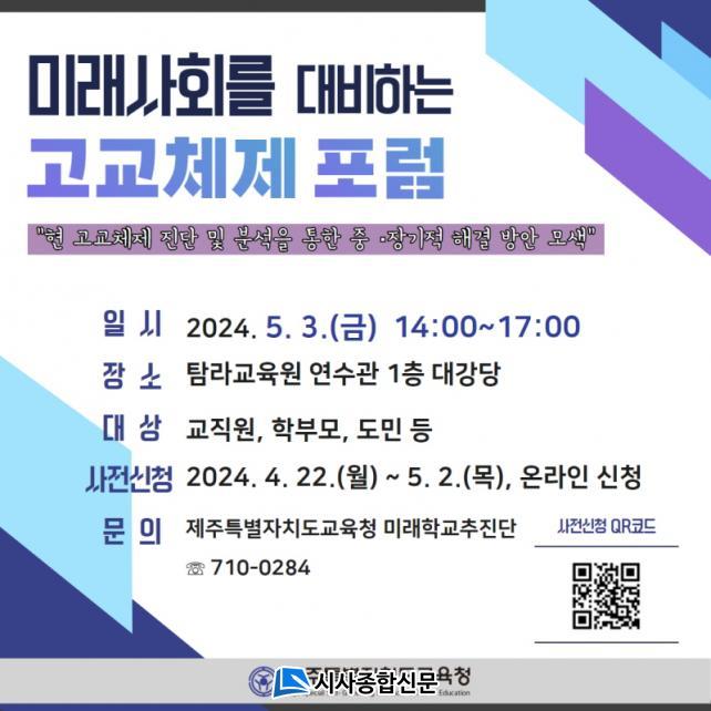 | Á¦ÁÖµµ±³À°Ã», ¹Ì·¡»çȸ¸¦ ´ëºñÇÏ´Â °í±³Ã¼Á¦ Æ÷·³ °³ÃÖ Çлý Á᫐ °í±³Ã¼Á¦ °³Æí ¹æ¾È ¸Ó¸® ¸Â´í´Ù |