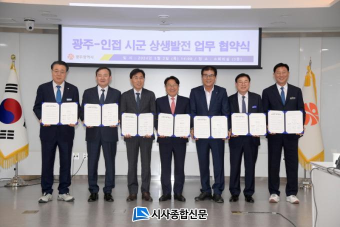 ±¤ÁÖ±¤¿ª½Ã(½ÃÀå °±âÁ¤)´Â 2ÀÏ ±¤ÁÖ½Ãû ¼ÒȸÀǽǿ¡¼ ¡®ºû°íÀ» ±¤¿ª°æÁ¦±Ç Á¶¼ºÀ» À§ÇÑ »ó»ý¹ßÀü ¾÷¹«Çù¾à½Ä¡¯À» °³ÃÖÇß´Ù. À̳¯ Çù¾à½Ä¿¡´Â °±âÁ¤ ±¤ÁÖ½ÃÀå, À̺´³ë ´ã¾ç±º¼ö, ±¸º¹±Ô ȼø±º¼ö, ÀÌ»óÀÍ ÇÔÆò±º¼ö, °Á¾¸¸ ¿µ±¤±º¼ö, ±èÇÑÁ¾ À强±º¼ö, ¾È»óÇö ³ªÁֺνÃÀå µîÀÌ Âü¼®Çß´Ù.