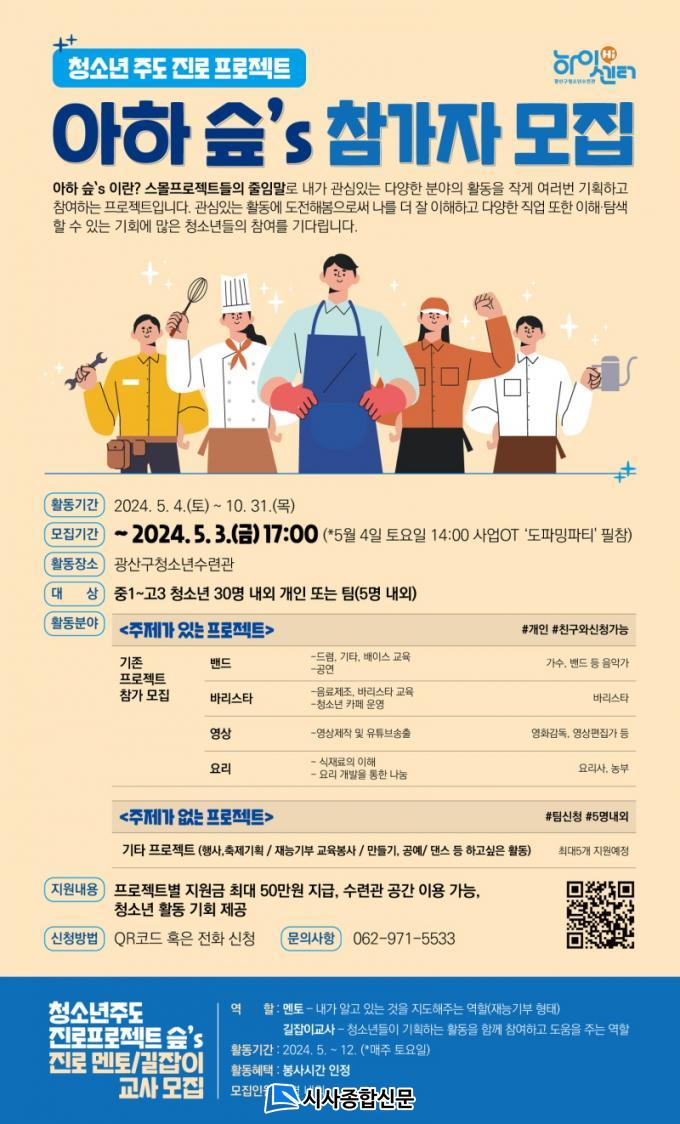 ÇÏÀ̼¾ÅÍ Ã»¼Ò³â ÁÖµµ Áø·Î ÇÁ·ÎÁ§Æ® ¡®¾ÆÇÏ! šÁs¡¯´Â ±¤»ê±¸Ã»¼Ò³â¼ö·Ã°ü ȨÆäÀÌÁö ¹× ÀνºÅ¸±×·¥À» ÅëÇØ ½Åû°¡´ÉÇϸç, ÀÚ¼¼ÇÑ »çÇ×Àº ±¤»ê±¸Ã»¼Ò³â¼ö·Ã°ü û¼Ò³âȰµ¿ÆÀÀ¸·Î ¹®ÀÇÇÏ¸é µÈ´Ù.
