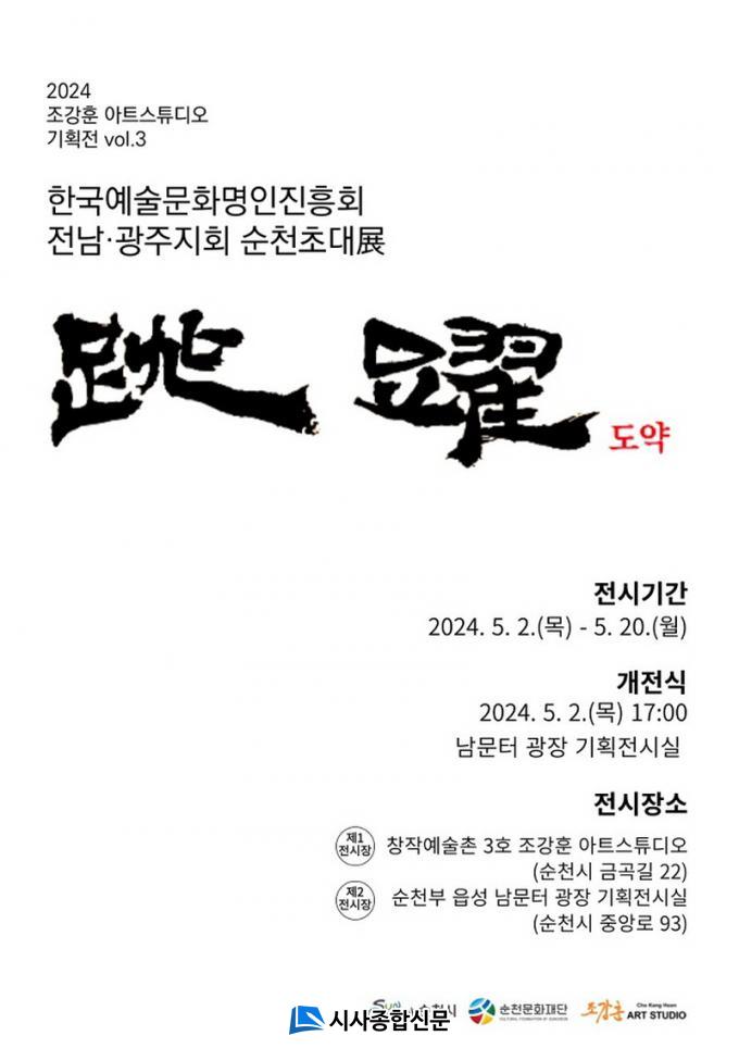[½Ã»çÁ¾ÇսŹ® = Àå¹Î±Ô ±âÀÚ] ¼øÃµ¹®ÈÀç´Ü(ÀÌ»çÀå ³ë°ü±Ô)ÀÌ ¿À´Â 20ÀϱîÁö ¼øÃµ âÀÛ¿¹¼úÃÌ 3È£ Á¶°ÈÆ ¾ÆÆ® ½ºÆ©µð¿À¿Í ¼øÃµºÎ À¾¼º ³²¹®ÅÍ ±¤Àå ±âȹÀü½Ã½Ç¿¡¼ Çѱ¹¿¹¼ú¹®È¸íÀÎÀÇ ÀÛǰÀ» ¸¸³ªº¼ ¼ö ÀÖ´Â Àü³²¡¤±¤ÁÖÁöȸ ¼øÃµÃÊ´ëî÷À» °³ÃÖÇÑ´Ù.