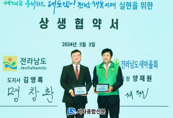 Àü³²µµ´Â 3ÀÏ µµÃ» ±è´ëÁß°´ç¿¡¼ °³ÃÖµÈ Á¦14ȸ »õ¸¶À»ÀÇ ³¯ ±â³ä½Ä¿¡¼ Àü³²µµ»õ¸¶À»È¸¿Í Áö¿ª ¹ßÀüÀ» À§ÇÑ »ó»ý Çù¾àÀ» ÇÏ°í µµÁ¤ ÆÄÆ®³Ê·Î¼ Çù¾÷À» ´õ¿í °ÈÇϱâ·Î Çß´Ù.
