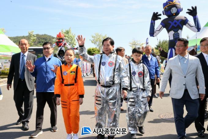 ÀηùÀÇ À§´ëÇÑ ºñ»ó ¡®Áö±¸Àο¡¼ ¿ìÁÖÀÎÀ¸·Î¡¯¶ó´Â ½½·Î°ÇÀ» ³»°Ç À̹ø ÃàÁ¦´Â °ø¿µ¹Î ±º¼ö¿Í Áö¿ª¹Î, ±×¸®°í ¹Ì·¡ ÁÖÀΰøÀÎ ¾î¸°À̰¡ Çϳª µÅ ¿ìÁÖ¸¦ ÇâÇÑ ÈûÂù °ÉÀ½À» ³»µó´Â ÀÔÀå ÆÛÆ÷¸Õ½º·Î °³¸·½ÄÀ» ´ë½ÅÇÏ¸ç ¿ìÁÖÃÌ ÃàÁ¦ÀÇ ¹®À» Ȱ¦ ¿¾ú´Ù.