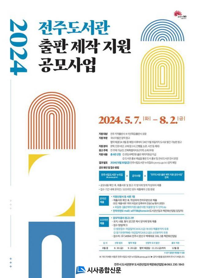 ÀüÁֽô ¡®2024 ÀüÁÖµµ¼°ü ÃâÆÇ Á¦ÀÛ Áö¿ø °ø¸ð»ç¾÷¡¯À» 7ÀϺÎÅÍ 8¿ù2ÀϱîÁö Á¢¼ö¹Þ´Â´Ù°í ¹àÇû´Ù. ÀüÁֽô À̹ø °ø¸ð¸¦ ÅëÇØ ÃÑ 6ÆíÀÇ ÀÛǰÀ» ¼±Á¤, ÃÑ 3,600¸¸ ¿øÀÇ ÃâÆÇ Á¦ÀÛÁö¿ø±ÝÀ» Áö¿øÇÒ ¿¹Á¤ÀÌ´Ù. °ø¸ð´Â 1ÀÎ ¹× µ¶¸³ÃâÆÇ»ç¸¦ Æ÷ÇÔÇÑ ÀüÁÖ¿¡ ¼ÒÀçÁö¸¦ µÎ°í ÀÖ´Â Áö¿ª ÃâÆÇ»ç¸¦ ´ë»óÀ¸·Î ÁøÇàµÈ´Ù.