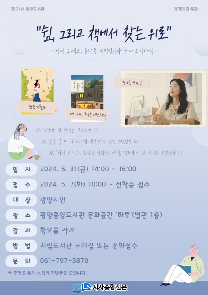 ¼ö° ½ÅûÀº 5¿ù 7ÀϺÎÅÍ ±¤¾ç½Ã¸³µµ¼°ü ´©¸®ÁýÀ» ÅëÇϰųª Áß¾Óµµ¼°üÆÀ(¢Ï061-797-3870)¿¡ ÀüÈ·Î °¡´ÉÇϸç, ±âŸ ±Ã±ÝÇÑ »çÇ×Àº Áß¾Óµµ¼°üÆÀ¿¡ ¹®ÀÇÇϸé ÀÚ¼¼È÷ ¾È³»¹ÞÀ» ¼ö ÀÖ´Ù.