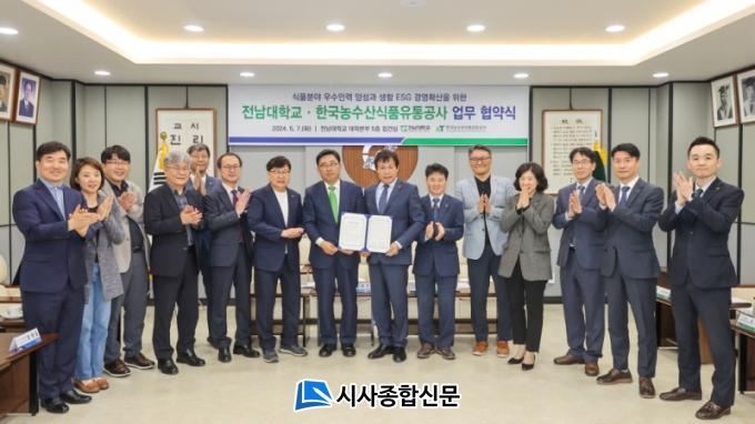 Àü³²´ë´Â 5¿ù 7ÀÏ ´ëÇÐ º»ºÎ 5Ãþ Á¢°ß½Ç¿¡¼ Á¤¼ºÅà ÃÑÀåÀº ±èÃáÁø Çѱ¹³ó¼ö»ê½ÄǰÀ¯Åë°ø»ç »çÀå°ú µÎ ±â°ü °ü°èÀÚ°¡ ¸ðÀÎ °¡¿îµ¥ À̰°ÀÌ Çù¾àÇϰí, ¡ãǪµåÅ×Å©, ³ó¼ö»ê½ÄǰºÐ¾ß Àü¹®Àη ¾ç¼º Çù·Â ¡ãÀúź¼Ò ½Ä»ýȰ ¿îµ¿ ½Çõ È®»ê ¡ã´ëÇѹα¹ ³ó¼ö»ê½Äǰ ¼ö±Þ ¾ÈÁ¤°ú À¯Å뱸Á¶ °³¼± µî ³ó¼ö»ê½Äǰ»ê¾÷ ¹ßÀüÀ» À§ÇØ ÀηÂ, ±â¼ú, Á¤º¸±³·ù¿¡ Àû±Ø Çù·ÂÇϱâ·Î Çß´Ù.