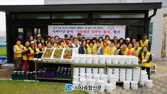 ȸ¿ø 50¿© ¸íÀÌ Áøµµ±º ¿©¼ºÇöóÀÚ¿¡ ¸ð¿© ¾î¹öÀ̳¯À» ±â³äÇØ »ç¶û°ú Á¤¼ºÀ» °¡µæ ´ãÀº ¿¹«±èÄ¡¿Í ¿µ¾ç¼³±â¶±À» Á÷Á¢ ¸¸µé¾ú´Ù. ¶ÇÇÑ ¸¸µç À½½ÄÀ» Á÷Á¢ ¹è´ÞÇÏ¸ç ¾ÈºÎ¸¦ »ìÇÇ°í ¾î¸£½Åµé¿¡°Ô´Â Ä«³×À̼ÇÀ» ´Þ¾Æµå¸®´Â µî µû¶æÇÑ ³ª´®À» ½ÇõÇß´Ù.