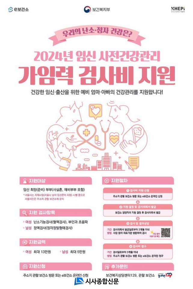 »ç½ÇÈ¥ ¹× ¿¹ºñºÎºÎ Æ÷ÇÔÇÑ ÀӽŠÁغñ ºÎºÎÀÌ¸é ¿©¼ºÀº ³¼Ò±â´É°Ë»ç(AMH) ¹× ºÎÀΰú ÃÊÀ½ÆÄ°Ë»ç ºñ¿ë ÃÖ´ë 13¸¸¿ø, ³²¼ºÀº Á¤¾×°Ë»ç(Á¤ÀÚ Á¤¹ÐÇüÅÂ°Ë»ç Æ÷ÇÔ) ºñ¿ë ÃÖ´ë 5¸¸¿øÀ» Áö¿øÇÑ´Ù.