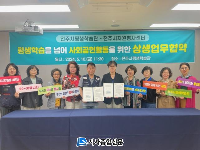 ÀüÁÖ½ÃÆò»ýÇнÀ°ü°ú ÀüÁÖ½ÃÀÚ¿øºÀ»ç¼¾ÅÍ´Â 10ÀÏ À̰æÁø ¼¾ÅÍÀåÀ» ºñ·ÔÇÑ ¾ç ±â°ü °ü°èÀÚ¿Í ¼ºÀÎÇнÀ »çȸ°øÇå Ȱµ¿°¡ µî 10¿© ¸íÀÌ Âü¼®ÇÑ °¡¿îµ¥ ¡®Æò»ýÇнÀ°ú ÀÚ¿øºÀ»ç °£ °øµ¿Çù·Â ¹× Á¤º¸±³·ù, »óÈ£¹ßÀüÀ» À§ÇÑ »ó»ý ¾÷¹«Çù¾à¡¯À» ü°áÇß´Ù.