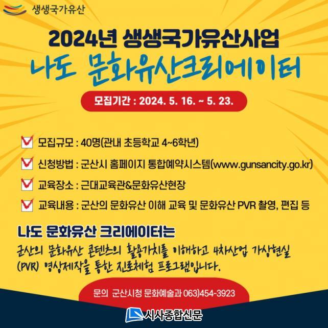 ¡°³ªµµ ¹®ÈÀ¯»ê Å©¸®¿¡ÀÌÅÍ¡±ÇÁ·Î±×·¥Àº ¹®ÈÀçû¿¡¼ ÈÄ¿øÇÏ°í ±º»ê½Ã¿¡¼ ÃßÁøÇÏ´Â ±Ù´ë¹®ÈÀ¯»êÀ» Ȱ¿ëÇÑ »ý»ý±¹°¡À¯»ê»ç¾÷ Áß ÇϳªÀÌ´Ù.