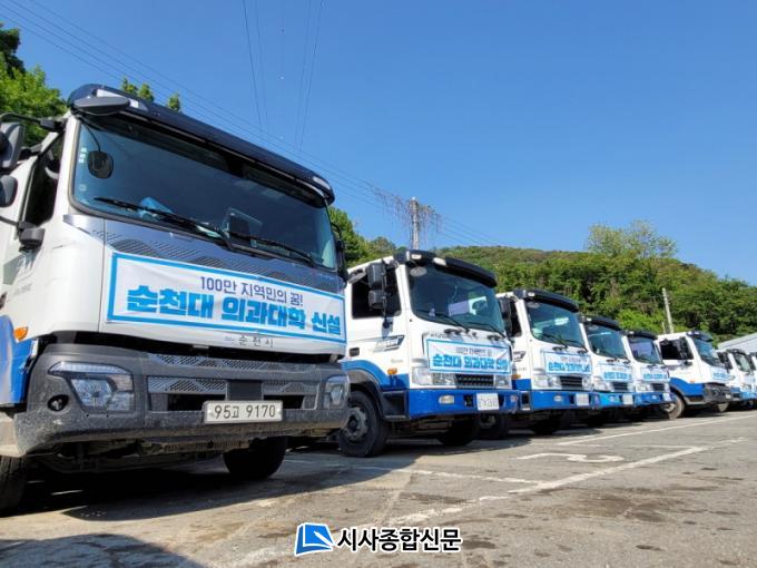 ¼øÃµ½Ã Á÷¿µ û¼ÒÂ÷·®°ú ´ëÇà»ç û¼ÒÂ÷·® ÃÑ 60´ë¿¡ ¡®100¸¸ Áö¿ª¹ÎÀÇ ²Þ ¼øÃµ´ë Àǰú´ëÇÐ ½Å¼³¡¯Çö¼ö¸·À» ºÎÂøÇϰí 24°³ À¾¸éµ¿ ±¸¼®±¸¼®À» µ¹¸ç Áö¿ª¹ÎÀÇ ±¹¸³¼øÃµ´ë ÀÇ´ë ½Å¼³ ÀÇÁö¸¦ ¾Ë¸®°í ÀÖ´Ù.