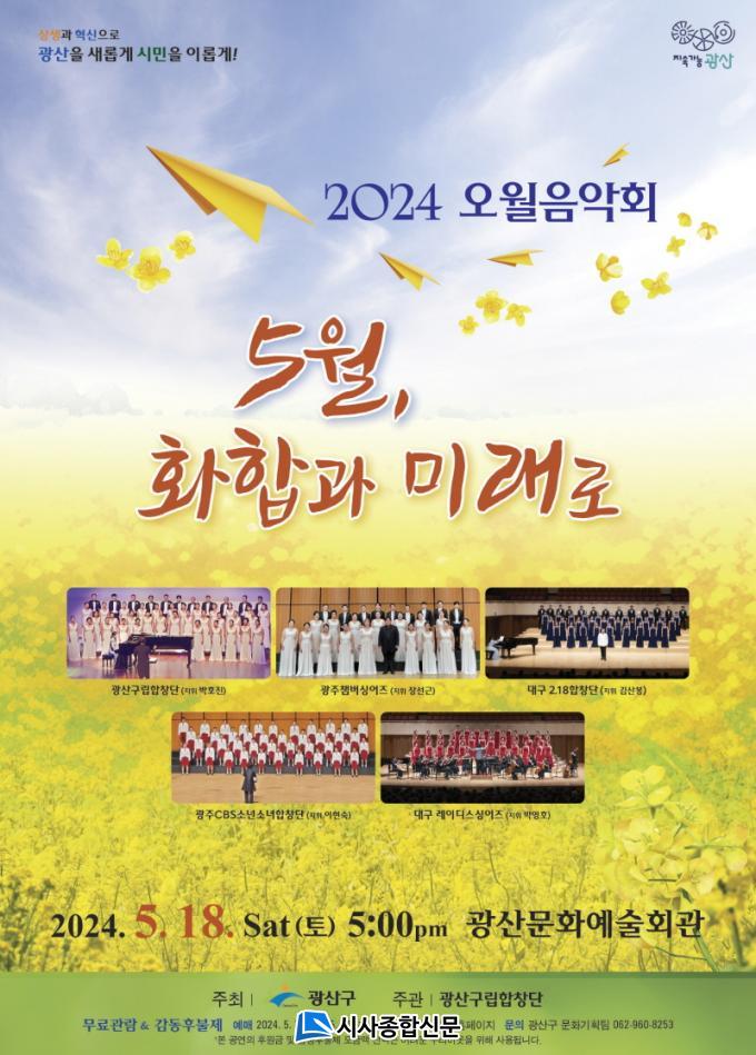 18ÀÏ ¿ÀÈÄ 5½Ã ±¤»ê¹®È¿¹¼úȸ°ü¿¡¼ ¿¸®´Â ¿À¿ùÀ½¾Çȸ´Â ¡®5¿ù, ÈÇÕ°ú ¹Ì·¡·Î¡¯¸¦ ÁÖÁ¦·Î ÇÑ´Ù. ±¤»ê±¸°¡ ¿À¿ùÀ½¾Çȸ¸¦ °³ÃÖÇÑ ÀÌ·¡ ÃÖÃÊ·Î ¿µ‧È£³²ÀÌ ÇÔ²²Çϴ Ưº°ÇÑ ¹«´ë¸¦ ¼±º¸ÀδÙ.