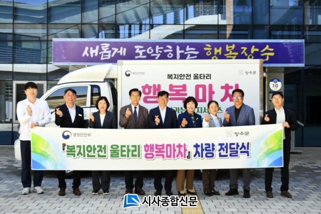 Àü´Þ½Ä¿¡´Â ÃÖÈÆ½Ä ±º¼ö, Àå¼ö±º»çȸº¹ÁöÇùÀÇȸÀå, Àå¼ö±º Áö¿ª»çȸº¸Àå´ëÇ¥ÇùÀÇü ¹Î°£À§¿øÀå, Àå¼öÀ¾Àå, Àå¼öÀ¾ Áö¿ª»çȸº¸ÀåÇùÀÇü ¹Î°£À§¿øÀå µîÀÌ Âü¼®ÇÑ °¡¿îµ¥, »çȸº¹ÁöÇùÀÇȸ(ȸÀå °í°¿µ)¿¡ EV ³Ãµ¿Å¾Â÷¸¦ Àü´ÞÇß´Ù.