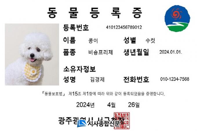 [½Ã»çÁ¾ÇսŹ® = ±è¿¬Èñ ±âÀÚ] ±¤ÁÖ±¤¿ª½Ã ¼±¸(±¸Ã»Àå ±èÀ̰)°¡ µ¿¹°µî·ÏÁ¦¸¦ È«º¸¤ýÀå·ÁÇϱâ À§ÇØ Ä«µåÇü µ¿¹°µî·ÏÁõÀ» ¹ß±ÞÇÑ´Ù.