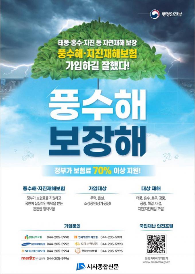 dz¼öÇØº¸Çè °¡ÀÔÀ» Èñ¸ÁÇÏ´Â ½Ã¹ÎÀº ±¹¹ÎÀç³¾ÈÀüÆ÷ÅÐ(www.safekorea.go.kr) dz¼öÇØº¸Çè °¡ÀÔ ¾È³»¸¦ Âü°íÇØ 7°³ ¹Î¿µº¸Çè»ç¿Í µ¿ ÇàÁ¤º¹Áö¼¾Å͸¦ ÅëÇØ °¡ÀÔÇÏ¸é µÈ´Ù.