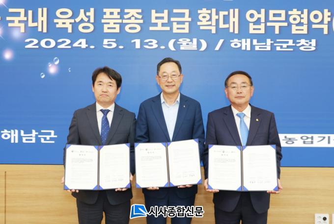 ÇØ³²±ºÀº 13ÀÏ ÇØ³²±ºÃ»¿¡¼ ³óÃÌÁøÈïû ±¹¸³½Ä·®°úÇпø, Àü¶ó³²µµ³ó¾÷±â¼ú¿ø°ú °í±¸¸¶ ±¹³» À°¼º ǰÁ¾ÀÇ °³¹ß ¹× º¸±Þ È®´ë¸¦ À§ÇÑ ¾÷¹«Çù¾àÀ» ü°áÇß´Ù.