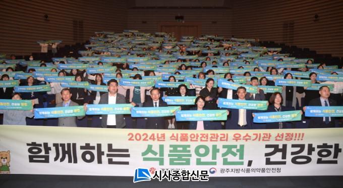 °í±¤¿Ï ±¤ÁÖ½ÃÇàÁ¤ºÎ½ÃÀåÀ» ºñ·ÔÇØ ½Äǰ¾ÈÀü¿¡ ±â¿©ÇÑ ½ÄǰÀ§»ý¾÷ü, ½Äǰ°ü·Ã´Üü, ¼ÒºñÀÚ½ÄǰÀ§»ý°¨½Ã¿ø, ±Þ½Ä°ü¸®Áö¿ø¼¾ÅÍ, °ü°è°ø¹«¿ø µî 400¿©¸íÀÌ Âü¼®ÇÑ °¡¿îµ¥ ¿¸° À̳¯ ±â³ä½Ä¿¡¼´Â ½Äǰ¾ÈÀü À¯°øÀÚ 42¸í¿¡ ´ëÇÑ Ç¥Ã¢ ¼ö¿©¿Í ¡®ÇÔ²²ÇÏ´Â ½Äǰ¾ÈÀü, °Ç°ÇÑ ±¤ÁÖ¡¯¸¦ ¸¸µé±â À§ÇÑ ´Üü ÆÛÆ÷¸Õ½º°¡ ÁøÇàµÆ´Ù.