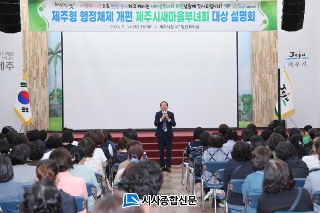 Á¦Áֽô »õ¸¶À»ºÎ³àȸ ȸ¿ø 200¿© ¸íÀ» ´ë»óÀ¸·Î Á¦ÁÖÇü ÇàÁ¤Ã¼Á¦ °³Æí µµÀÔ ¹è°æ°ú °³Æí »çÇ×, ÇâÈÄ ·Îµå¸Ê µîÀ» ¼³¸íÇÏ¸é¼ Âü¿©ÀÚµéÀÇ ÀÌÇØµµ¸¦ ³ôÀ̰í, °ü½ÉÀ» À̲ø¾ú´Ù.