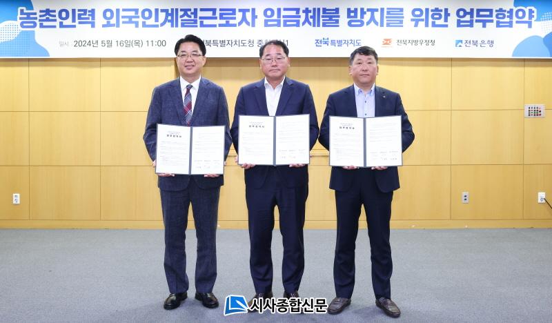 ÀüºÏƯº°ÀÚÄ¡µµ´Â 16ÀÏ ÀüºÏÀºÇà(ÀºÇàÀå ¹éÁ¾ÀÏ)¡¤ÀüºÏ¿ìÁ¤Ã»(ûÀå À̽¿ø)°ú ÇÔ²² ¾÷¹«Çù¾à½ÄÀ» ÁøÇàÇß´Ù°í ¹àÇû´Ù. °¢ ±â°üµéÀº À̹ø Çù¾à½ÄÀ» ÅëÇØ ¿Ü±¹ÀΰèÀý±Ù·ÎÀÚÀÇ ÀÓ±ÝüºÒ°ú ¹«´ÜÀÌÅ» ¹æÁö¸¦ À§ÇØ ÇàÁ¤Àû¡¤ÀçÁ¤Àû Áö¿ø Çù·Âü°è ±¸ÃàÀ» ¾à¼ÓÇß´Ù.