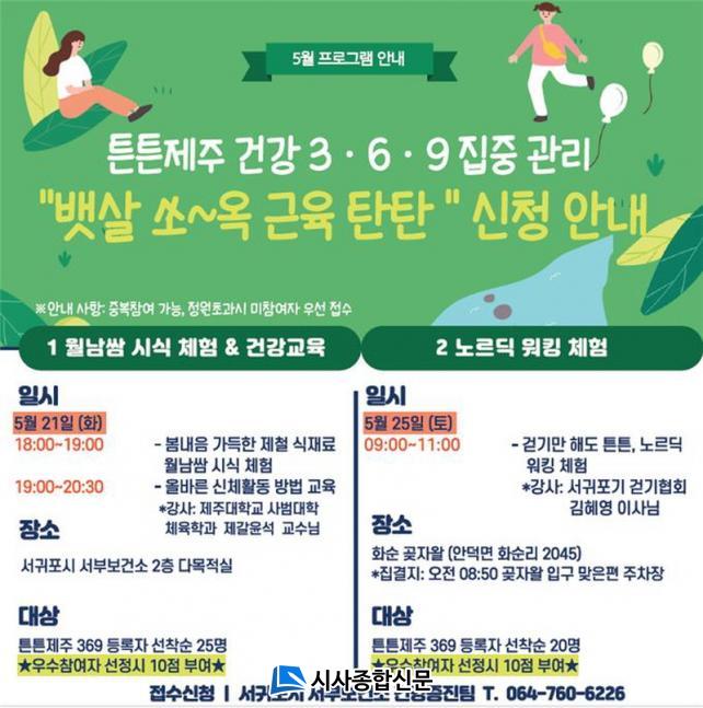 <¹î»ì ½î~¿Á ±ÙÀ° źź ÇÁ·Î±×·¥>Àº 5¿ùºÎÅÍ 10¿ù±îÁö 6°³¿ù°£ ¸Å¿ù 2ȸ ÀÌ»ó ´Ù¾çÇÑ ¿îµ¿ ¹× °Ç°ÇÑ ¿µ¾ç½Ä´Ü üÇèÀ¸·Î ÁøÇàµÇ¸ç, ´ë»óÀÚ´Â ¸Å¿ù º°µµ °øÁö¸¦ ÅëÇØ ȸÂ÷º° 20¿©¸í ¼±Âø¼ø ¸ðÁýÇÑ´Ù. Âü¿©¸¦ Èñ¸ÁÇÏ´Â »ç¶÷Àº ¼ºÎº¸°Ç¼Ò °Ç°ÁõÁøÆÀÀ¸·Î ÀüÈÇϰųª ¹æ¹®ÇÏ¸é ¾È³» ¹ÞÀ» ¼ö ÀÖ´Ù.