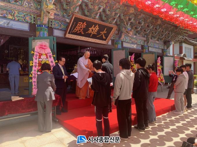 [½Ã»çÁ¾ÇսŹ® = ¿À½ÂÅà ±âÀÚ] ¸ñÆ÷ º¸ÇöÁ¤»ç(ȸÁÖ ¼®Á¤°¢ Å«½º´Ô)°¡ Áö³ 15ÀÏ ºÎó´Ô¿À½Å³¯À» ¸Â¾Æ ¿¸° ºÀÃà ´ë¹ýȸ¿¡¼ ¿î³²¸é Çлýµé°ú ³ëÀÎȸ¿¡ ÃÑ 2,000¸¸¿øÀÇ ÀåÇÐ±Ý ¹× ÈÄ¿ø±ÝÀ» Àü´ÞÇÏ¸ç ³ª´®°ú ÈÇÕÀ» ½ÇõÇß´Ù.