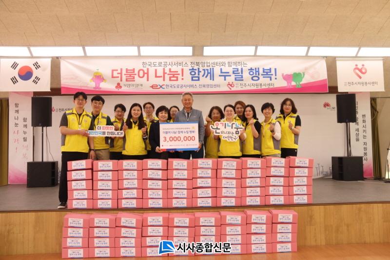ÀüÁÖ½ÃÀÚ¿øºÀ»ç¼¾ÅͰ¡ ÁÖ°üÇÑ À̳¯ ÀÚ¿øºÀ»çȰµ¿¿¡´Â Çѱ¹µµ·Î°ø»ç¼ºñ½º(ÁÖ) ÀüºÏ ¿µ¾÷¼Ò Á÷¿øµéÀÌ ÀÚ¹ßÀûÀ¸·Î ¸ð±ÝÇØ ÀüºÏ»çȸº¹Áö°øµ¿¸ð±Ýȸ(ȸÀå ±èµ¿¼ö)¿¡ ±âŹÇÑ ¼º±Ý 300¸¸ ¿øÀ¸·Î ±¸ÀÔÇÑ »ýÇÊǰ 6Á¾, 13°³ ǰ¸ñ(3¸¸ ¿ø »ó´ç)À» ÀÓÁ÷¿øµé°ú ÀÚ¿øºÀ»ç¼¾ÅÍ Á÷¿øµéÀÌ ¹Ú½º·Î Æ÷ÀåÇÏ´Â ¹æ½ÄÀ¸·Î ÀÌ·ïÁ³´Ù.
