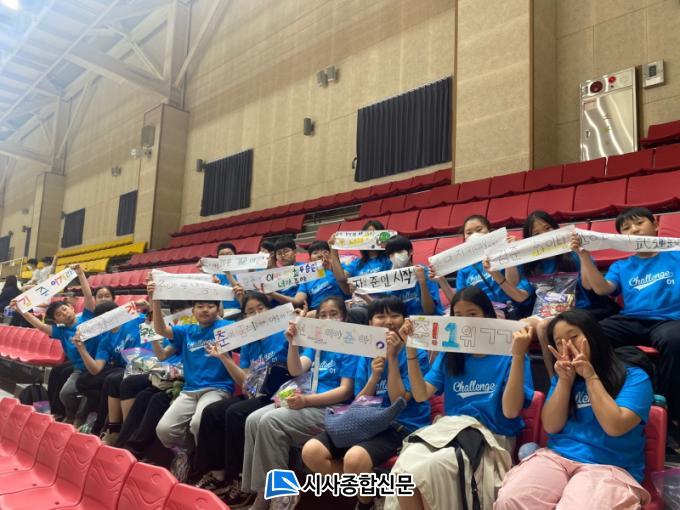 ´ã¾ç ÇÑÀçÃÊ¿¡¼´Â ½¶·±SL-6 È¥¼ºÀü¿¡ ÃâÀüÇÑ ±èÁØ ¼±¼ö¸¦ ÀÀ¿øÇϱâ À§ÇØ °°Àº ¹Ý ÇлýµéÀÌ ¼ö¾÷ ½Ã°£¿¡ Á÷Á¢ ¸¸µç Çö¼ö¸·À» µé°í ±¤¾ç¼ºÈ²½ºÆ÷Ã÷¼¾ÅͱîÁö ¿Í¼ ¿¶í ÀÀ¿øÀ» ÆîÃÆÀ¸¸ç, ±èÁØ ÇлýÀº ÀÀ¿ø¿¡ ÈûÀÔ¾î °ªÁø Àº¸Þ´ÞÀ» ¶¤´Ù.