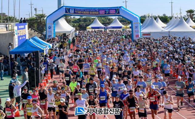 ¡®2025 APEC Á¤»óȸÀÇ Á¦ÁÖ À¯Ä¡ ±â¿ø Á¦28ȸ Á¦ÁÖ±¹Á¦°ü±¤¸¶¶óÅæÃàÁ¦¡¯°¡ 19ÀÏ ¿ÀÀü 8½Ã ±¸ÁÂÁ¾ÇտÀå ÀÏ´ë¿¡¼ ¿·È´Ù.Á¦ÁÖµµ°¡ ÁÖÃÖÇϰí Á¦ÁÖ°ü±¤Çùȸ¿¡¼ ÁÖ°üÇÑ À̹ø ÃàÁ¦´Â µµ¹ÎÀÇ °Ç° ÁõÁø, ¾ÈÀü Á¦ÁÖ°ü±¤ À̹ÌÁö Á¦°í¿Í ÇÔ²² 20¿© ³â ÀüºÎÅÍ ½ÃÀÛµÈ APEC Á¤»óȸÀÇ Á¦ÁÖ À¯Ä¡ÀÇ ±ä ¿©Á¤À» ¼º°øÀûÀ¸·Î ¿ÏÁÖÇϰڴٴ ÀÇÁö¸¦ ´ã°í ÀÖ´Ù.