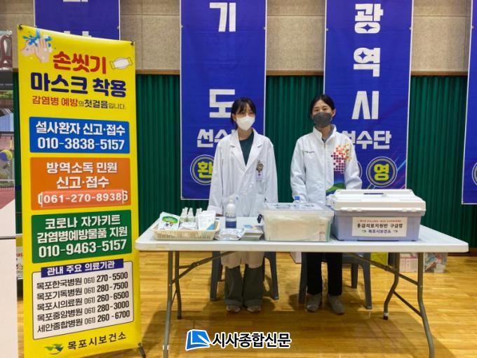 ¸ñÆ÷½Ã´Â Áö³ 18ȸ Àü±¹Àå¾ÖÇлýüÀü ±â°£, ¹æ¿ª´ëÃ¥¹ÝÀ» Æí¼ºÇØ 24½Ã°£ ºñ»ó±Ù¹«Ã¼Á¦¸¦ °¡µ¿ÇÏ°í ¼±¼öµéÀÌ °æ±â Àü¡¤ÈÄ ¼Òµ¶ÇÒ¼ö ÀÖµµ·Ï ¼Õ¼¼Á¤Á¦¸¦ °æ±âÀå¿¡ ºñÄ¡ÇÏ´Â ÇÑÆí ÇØÃæ ±âÇÇÁ¦, ¼Ò¾Æ¡¤¼ºÀÎ¿ë ¸¶½ºÅ© µîµµ ºñÄ¡Çß´Ù.