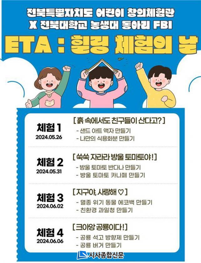 ÀüºÏƯº°ÀÚÄ¡µµ ¾î¸°ÀÌâÀÇüÇè°üÀº ¿À´Â 26ÀϺÎÅÍ 6¿ù 6ÀϱîÁö ÀüºÏ´ëÇб³ ³ó¾÷»ý¸í°úÇдëÇÐ µ¿¾Æ¸® FBI(Farm Business Industry)¿Í ÇÔ²² Ưº° ÇÁ·Î±×·¥ <Èú¸µÃ¼ÇèÀÇ ³¯>À» ¿î¿µÇÑ´Ù°í 23ÀÏ ¹àÇû´Ù.