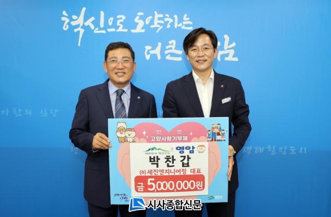 [½Ã»çÁ¾ÇսŹ® = ¿À½ÂÅà ±âÀÚ] ¹ÚÂù°© ¼¼Áø¿£Áö´Ï¾î¸µ ´ëÇ¥°¡ 23ÀÏ ¿µ¾Ï±ºÃ»À» ã¾Æ Áö¿ª¹ßÀüÀ» À§ÇØ ½á´Þ¶ó¸ç °íÇâ»ç¶û±â±Ý 500¸¸¿øÀ» ±âºÎÇß´Ù.