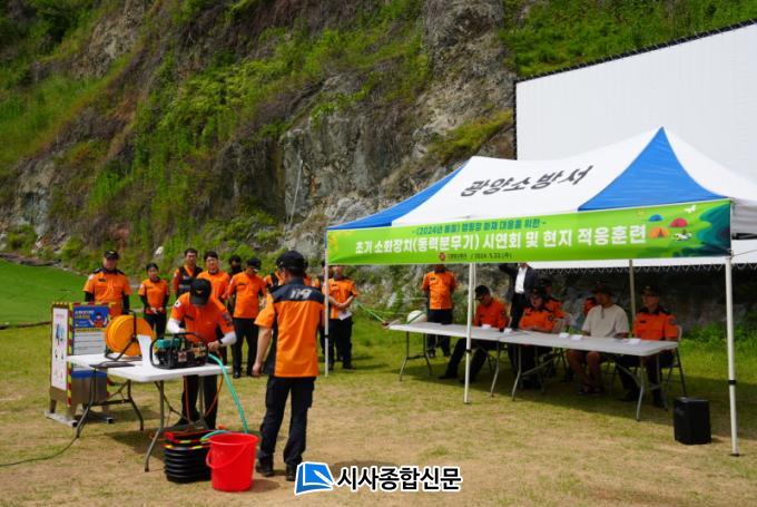 | ±¤¾ç¼Ò¹æ¼, ±Û·¥ÇÎÀå Ãʱâ¼ÒÈÀåÄ¡(µ¿·ÂºÐ¹«±â) ¼³Ä¡ ¹× ½Ã¿¬È¸ ½Ç½Ã |