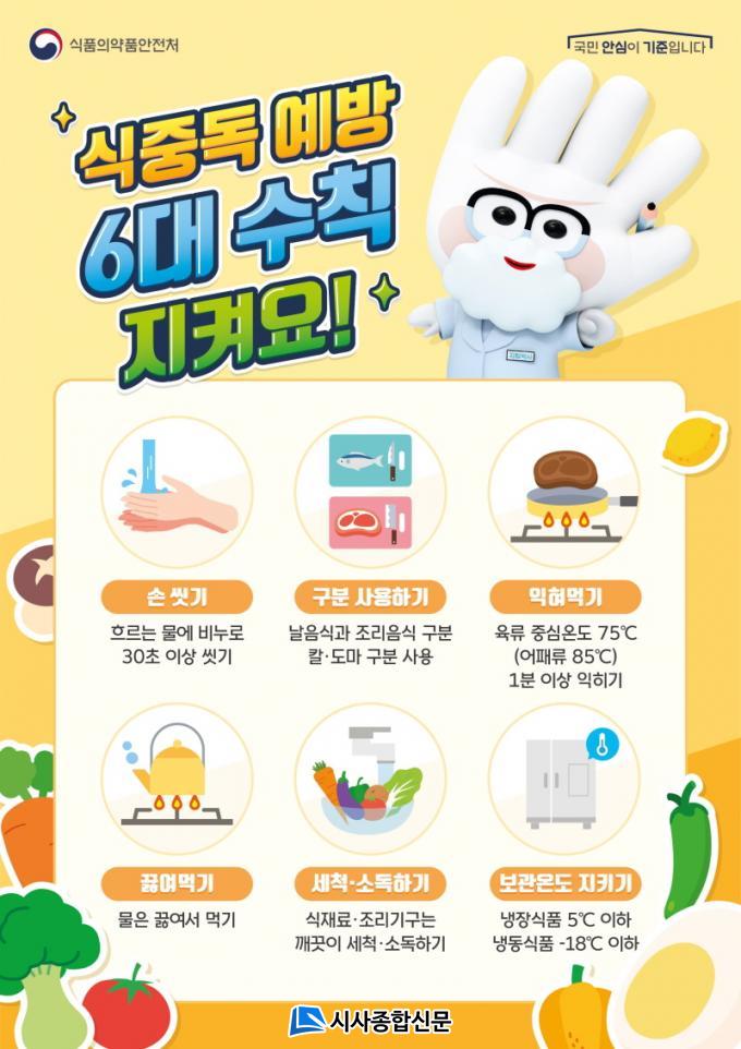 Á¡°Ë°ú ÇÔ²² Ä¿ÇÇ, À½·á µî ±¹¹ÎÀÌ ¸¹ÀÌ ¼·ÃëÇÏ´Â Á¶¸®½ÄǰÀ» ¼ö°ÅÇØ ½ÄÁßµ¶±Õ ¿À¿° ¿©ºÎµµ °Ë»çÇÒ ¿¹Á¤ÀÌ´Ù.¶ÇÇÑ °í¿Â¡¤´Ù½ÀÇÑ ¿©¸§Ã¶À» ¸ñÀü¿¡ µÎ°í ÀÖ¾î ½ÄÁßµ¶ ¹ß»ý Áõ°¡°¡ ¿ì·ÁµÊ¿¡ µû¶ó ½ÄÁßµ¶ ¿¹¹æ 6´ë ¼öÄ¢ Áöµµ¡¤È«º¸µµ ÇÔ²² ÆîÄ£´Ù. 6´ë ¼öÄ¢Àº ¼Õ¾Ä±â, ÀÍÇô¸Ô±â, ²ú¿©¸Ô±â, ¼¼Ã´¡¤¼Òµ¶Çϱâ, ³¯À½½Ä°ú Á¶¸®À½½Ä ±¸ºÐÇØ¼ Ä®¡¤µµ¸¶ ±¸ºÐ »ç¿ëÇϱâ, º¸°ü¿Âµµ Áö۱â´Ù.