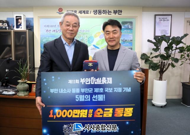 ¡®È²±Ý µ¿Á¾À» ¼±¹°ÇÕ´Ï´Ù¡¯´Â ºÎ¾È±º ±¹º¸ Á¦1È£·Î ½Â°ÝµÈ ºÎ¾È±º ³»¼Ò»ç °í·Áµ¿Á¾À» ±â³äÇϱâ À§ÇØ ÁøÇàµÆÀ¸¸ç ±â¾÷ÀÇ ÈÄ¿øÀ» ¹Þ¾Æ ¾à 1000¸¸¿ø »ó´çÀÇ ¼ø±Ý µ¿Á¾ 2°³¸¦ Á¦ÀÛÇØ ºÎ¾È±º °ü³» 1¸í, °ü¿Ü 1¸í ÃÑ 2¸í¿¡°Ô 2000¸¸¿ø »ó´çÀÇ ¼ø±Ý µ¿Á¾À» Ãß÷À» ÅëÇØ ÁõÁ¤ÇÏ´Â ºÎ¾È¸¶½ÇÃàÁ¦ Ưº° À̺¥Æ® ÇÁ·Î±×·¥ÀÌ´Ù.