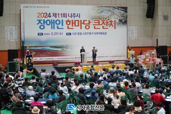 ÁöüÀå¾ÖÀÎÇùȸ ³ªÁÖ½ÃÁöȸ ¸Í¿µÁß ÁöȸÀåÀÇ °³È¸¼±¾ðÀ¸·Î ½ÃÀÛµÈ ±â³ä½ÄÀº ¸ð¹üÀå¾ÖÀÎ ¹× Àå¾ÖÀκ¹Áö À¯°øÀÚ ½Ã»ó½Ä°ú ³»¡¤¿Üºó Ãà»ç µîÀ¸·Î ÁøÇàµÆ´Ù. ¾Õ¼± ½ÄÀü °ø¿¬¿¡¼´Â Àü³²ÁöÀûÀå¾ÖÀκ¹ÁöÇùȸ ³ªÁÖ½ÃÁöºÎ ȸ¿ø ¹× ¼º»ê¿ø(Àå¾ÖÀΰÅÁֽü³) ÀÌ¿ëÀεéÀÌ ¹«´ë¸¦ ²Ù¸ç Áñ°Å¿òÀ» ´õÇß´Ù.