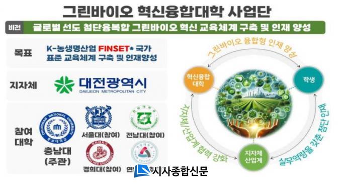 Àü³²´ëÇб³´Â Ãæ³²´ë(ÁÖ°ü), ¼¿ï´ë, °æÈñ´ë, ¿¬¾Ï´ë, ´ëÀü½Ã¿Í ÇÔ²² ¡®K-³ó»ý¸í»ê¾÷ FINSET ±¹°¡ Ç¥ÁØ ±³À°Ã¼°è ±¸Ãà ¹× ÀÎÀç¾ç¼º¡¯À» ¸ñÇ¥·Î ±×¸°¹ÙÀÌ¿À ºÐ¾ß ÄÁ¼Ò½Ã¾öÀ» ±¸¼ºÇß´Ù. ´ëÇÐ, ¿¬±¸±â°ü, »ê¾÷ü, Á¤ºÎ ºÎó°¡ ¼ÒÅëÇϸç Çõ½ÅÀûÀÎ ±³À° »ýŰ踦 ÅëÇØ ±×¸°¹ÙÀÌ¿À ºÐ¾ßÀÇ Çõ½ÅÀÎÀ縦 ¾ç¼ºÇÑ´Ù´Â °èȹÀÌ´Ù.