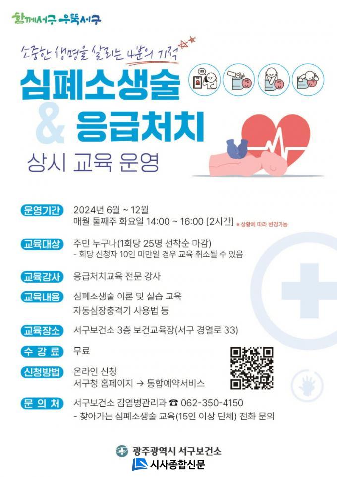 | ±¤Áֽà ¼±¸, ½ÉÆó¼Ò»ý¼ú »ó¼³ ±³À° ½Ç½Ã 6¿ùºÎÅÍ ¸Å¿ù µÑ° ÁÖ È¿äÀÏ ½ÉÆó¼Ò»ý¼ú ¹× ÀÀ±Þóġ °ü·Ã ±³À°